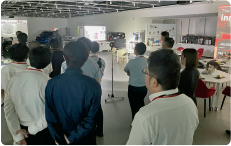 1日目は高輝度反射シートの技術管理センターを訪問し、宇宙開発規模の革新的な反射性能の技術、最新の乗用車にも搭載されている防音シートの性能など、普段学ぶことのできない専門的な知識を深めることができました。